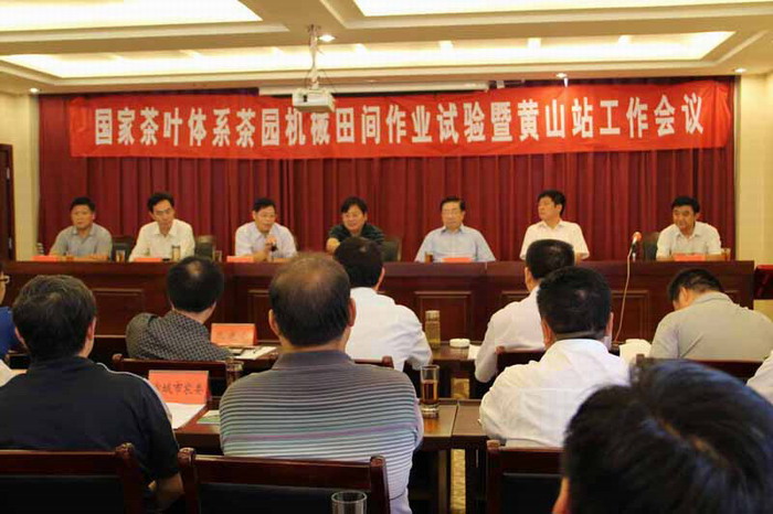 8月25日,“国家茶叶体系茶园机械田间作业试验暨黄山站工作会议”在安徽农垦十字铺茶场隆重举行。中国工程院院士、中国农科院茶叶研究所研究员陈宗懋,国家茶产业技术首席科学家、中国农科院茶叶研究所所长、研究员杨亚军及栽培研究室、植保研究室全体岗位科学家莅临指导。会议由安徽省农科院茶叶研究所所长、黄山综试站站长周坚主持。宣城市及郎溪县农委领导,黄山市祁门县和歙县农委领导,以及安徽各示范县技术骨干共80多人参加会议。
