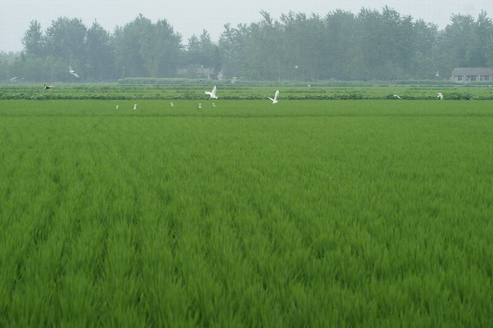 眼下,大圹圩农场正值水稻孕穗期,上万亩青禾汇成了绿色的海洋,绿树蓝天映衬,风景这边独好。优美的生态环境,时常吸引百鸟前来相会817日,在第二农管区一片稻田里,集中了数百只白鹭及其他各种美丽的鸟儿,时而觅食,时而飞翔,构成了一道人与自然和谐相处、独特而又靓丽的风景线。