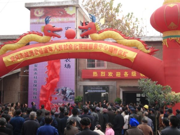 11月18日,位于皖河农场双河镇临街的社保中心办公楼门前广场上,鼓乐喧天,鞭炮齐鸣,人头攒动,热闹非凡。围观的人群中更多的是老年人,他们翘首期待着一个特别的时刻――安庆皖河农场退休人员社会化管理服务中心揭牌仪式。