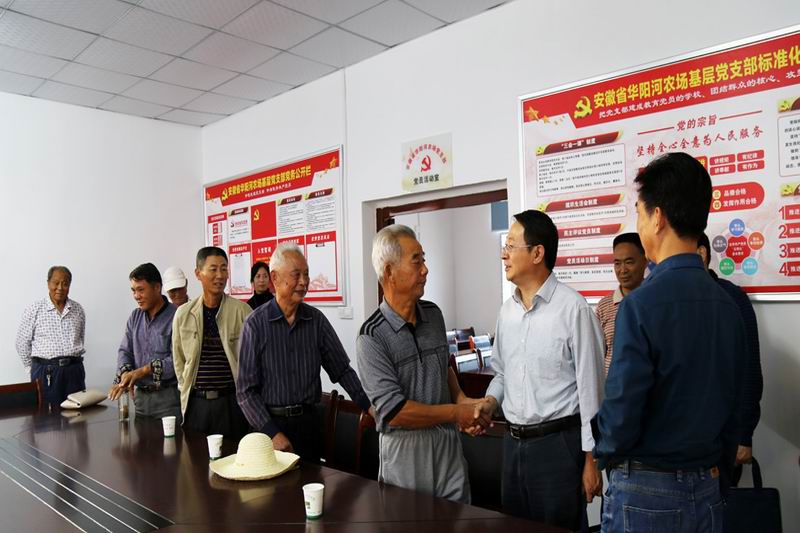 晚上,刘超举行华阳河农场领导班子座谈会,听取工作汇报及建议后,他说,在两节期间,在喜迎十九大的氛围里,来华阳河农场听了大家的建议,看了丰收在望的田野,感受到华阳河干群的精气神,十分欣慰,向全场干群致以节日的问候。刘超指出,华阳河农场改革发展民生和党建工作健康发展,既展示了2016年大洪水后在集团公司大力支持下,一年就打翻身仗的可喜成绩,又彰显了农场一班人锐意改革、奋力争先、关注民生、加强党建的丰硕成果,也是向十九大献了一份厚礼,希望农场班子带领全场以更加饱满的政治热情,鼓足“争上行”的干劲,继续推进改革发展民生和党建工作,打好秋收秋种攻坚战,继续巩固提高灾后重建的整体水平和实力,进一步加强基层党建工作,以党建促发展的实绩迎接党的十九大胜利召开。(李龙)