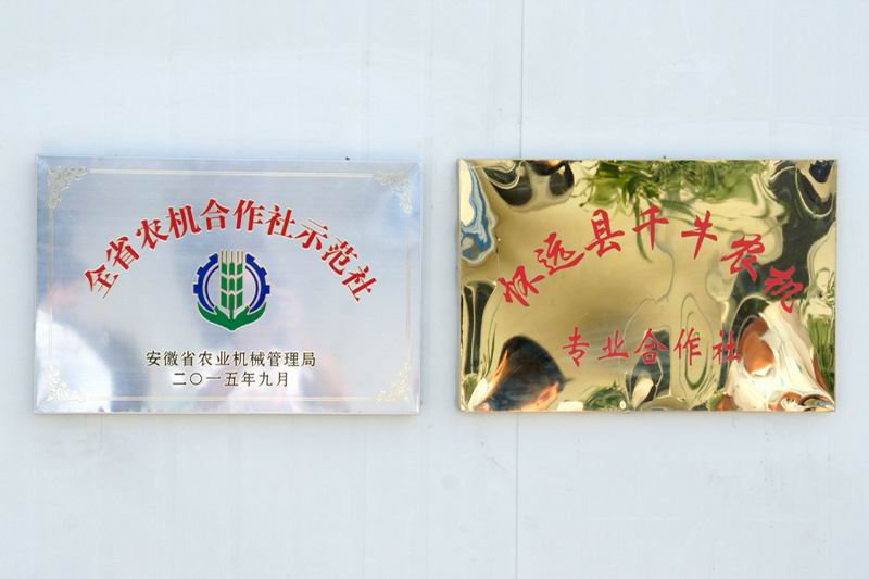 千牛农机合作社于2013年11月经怀远县工商局核准成立,注册资金150万元,现有资产350万元,目前社员16人,拥有各类机械23台套,租用场地