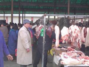 图片说明:龙亢农场坚持以人为本着力发展小城镇, 努力为进镇经商人员和城镇居民营造良好的经营和 购物环境,吸引众多客商前来经商、购物,小城镇日 成交额达100多万元。图为农贸市场一角。 (邵乃昌 王戴群)