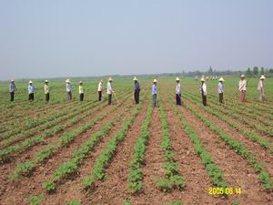 今年,华阳河农场棉花生产开局良好,形势喜人, 目前已进入棉花田管的关键时期。图为该场职工请 农工锄草的情景。
