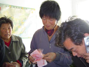 10月25日,龙亢农场将10万元奖金送到全场300多 户"种麦状元"、“种麦能手”和“小麦千斤户”手 中。至此,农场工会组织开展的“午收夏种系列劳 动竞赛活动”圆满结束。图为一分场"种麦状元"喜 领1000元奖金。